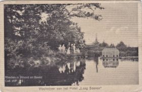 Foto ± 1906 'Hotel Laag-Soeren'. Voorheen buitenhuis Jut van Breukelerwaard met landgoed ca. 500 ha, de man van het badhuis stamt uit 18 eeuw. Na dood Jut 1873 een druk bezocht hotel met riant gemeubileerde kamers. In ± 1880 hotel verhuurd aan dhr. Berghege en beheerde. In ± 1906 hotel in bezit fam. Dullemond die bouwde 1925 serres en waranda's. In ± 1927 kwamen in het hotel badkamers. 1915 kregen gebr. Dullumond tel.nr. 59. Geplaatst 4-10-2017.
