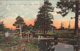 Weg naar de 'Sprengen' in/omstreeks 1906 in Laag-Soeren. Bij het bruggetje zit iemand gehurkt met zijn hand in het water. Geplaatst 15-1-2017.