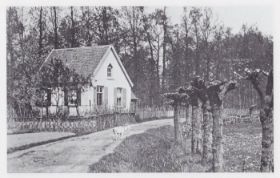 Foto 'Velpse Broek' ± 1903 met boerderij/woning niet 'De Kleine Durk' eigendom Gebr. Avelingh. Naast het 'Velpse Broek lag het 'Arnhemse Broek' het vormde één geheel. Omstreeks 1364 kwam het tot een verdeling 'Velpse Geërfden' kreeg een lange strook weiland 7 ha. Waar het geitje staat een rustige weggetje te kijken. Nu één van Velpse drukste verkeersaders, de 'Waterstraat'. Links achter boerderijtje 'De Elst' staan bomen van landgoed 'Larenstein' waar het Klooster staat. Geplaatst 28-9-2017.